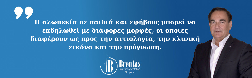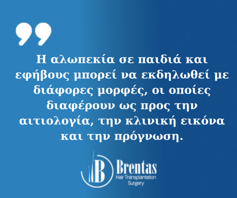 Η αλωπεκία σε παιδιά και εφήβους αποτελεί μια ιδιαίτερη και συχνά ψυχολογικά φορτισμένη κλινική κατάσταση. Η αιφνίδια ή σταδιακή απώλεια των μαλλιών μπορεί να προκαλέσει άγχος, χαμηλή αυτοεκτίμηση και κοινωνική απομόνωση στους νεαρούς ασθενείς.