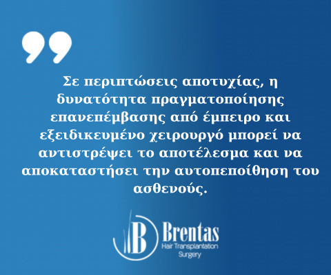 Αν και η μεταμόσχευση μαλλιών θεωρείται σήμερα μια ασφαλής και αποτελεσματική μέθοδος αποκατάστασης της τριχόπτωσης, σε ορισμένες περιπτώσεις το τελικό αποτέλεσμα μπορεί να μην είναι ικανοποιητικό. Η διερεύνηση των αιτίων και η σωστή προεγχειρητική αξιολόγηση αποτελούν βασικά βήματα για την επιτυχία της μεταμόσχευσης μαλλιών. Σε περιπτώσεις αποτυχίας, η δυνατότητα πραγματοποίησης επανεπέμβασης από έμπειρο και εξειδικευμένο χειρουργό μπορεί να αντιστρέψει το αποτέλεσμα και να αποκαταστήσει την αυτοπεποίθηση του ασθενούς.