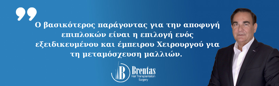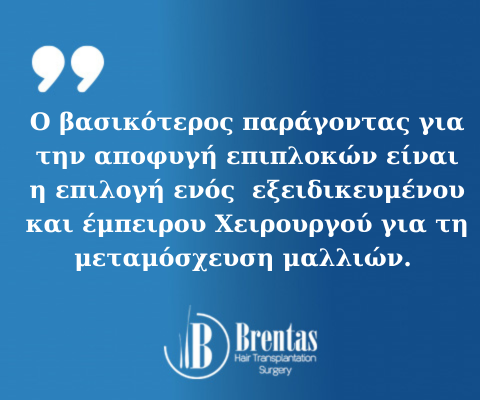 Ο βασικότερος παράγοντας για την αποφυγή επιπλοκών είναι η επιλογή ενός εξειδικευμένου και έμπειρου Χειρουργού για τη μεταμόσχευση μαλλιών.